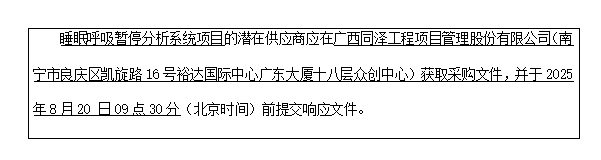 6.采購需求:睡眠呼吸暫停分析系統(tǒng)項目1項。具體內(nèi)容詳見本競爭性磋商文件。