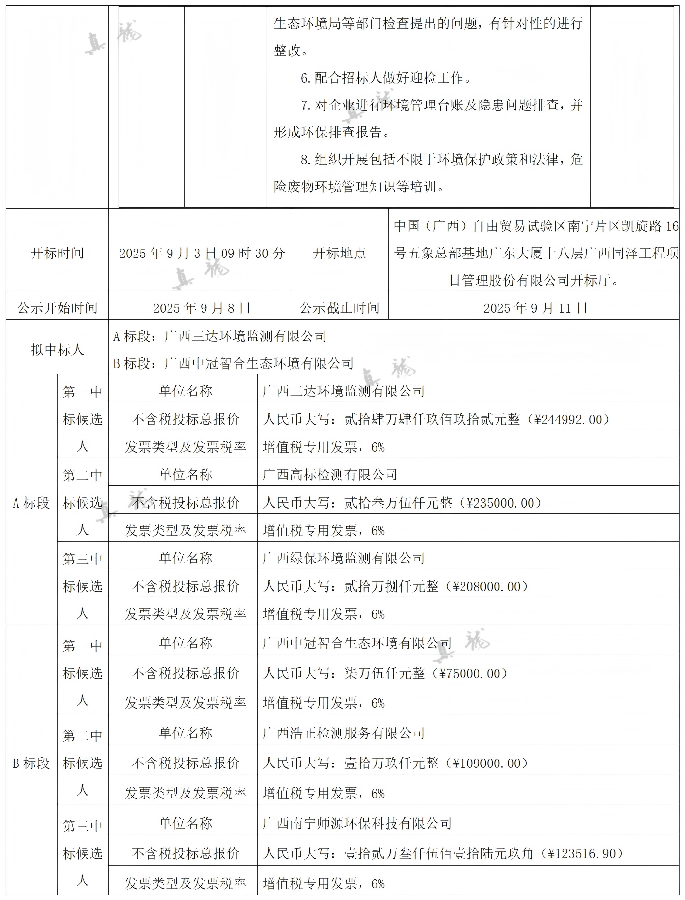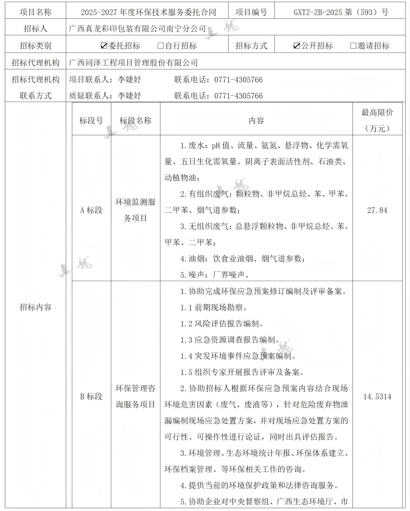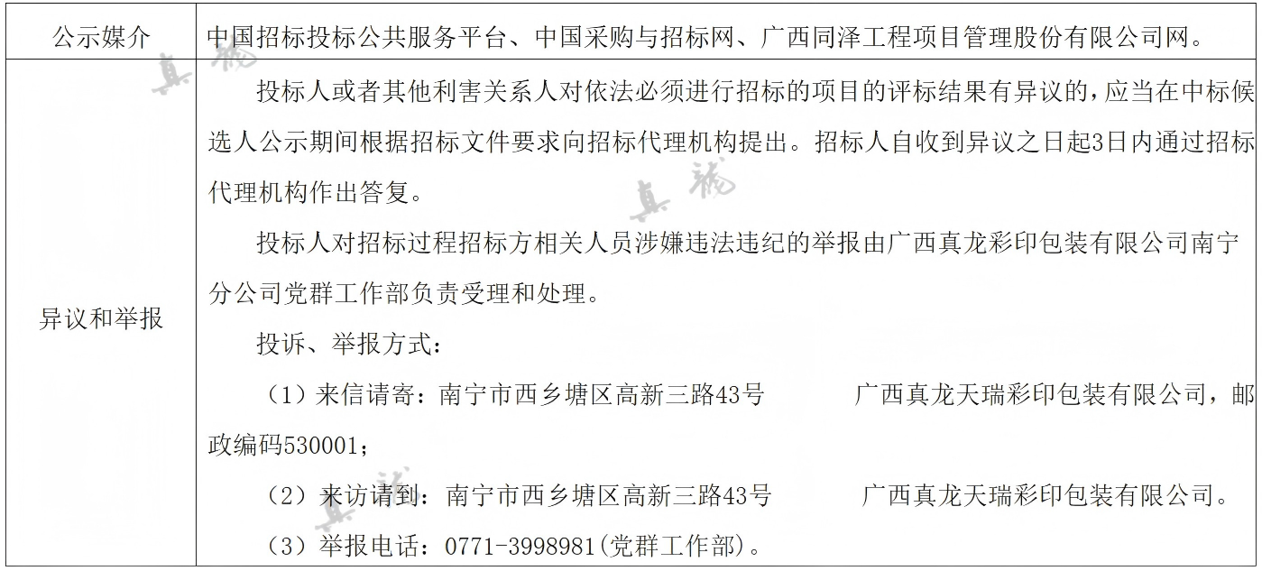 廣西真龍彩印包裝有限公司南寧分公司2025-2027年度環(huán)保技術(shù)服務(wù)委托合同(項(xiàng)目編號:GXTZ-ZB-2025第(593)號)中標(biāo)候選人公示