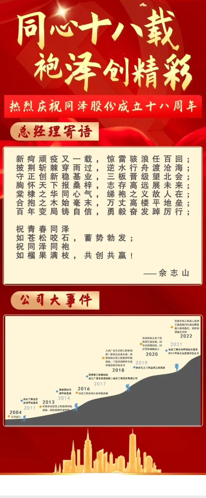 同心十八載 袍澤創(chuàng)精彩|熱烈慶祝同澤股份成立十八周年